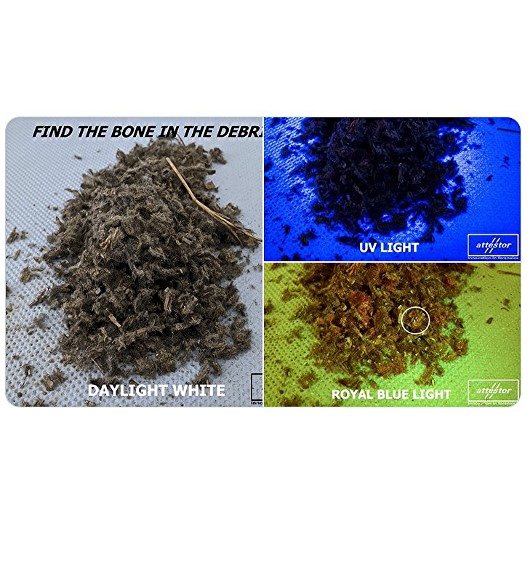 Finden Sie Beweismittel wie Knochenfragmente mit Hilfe kriminaltechnischer Beleuchtung ...